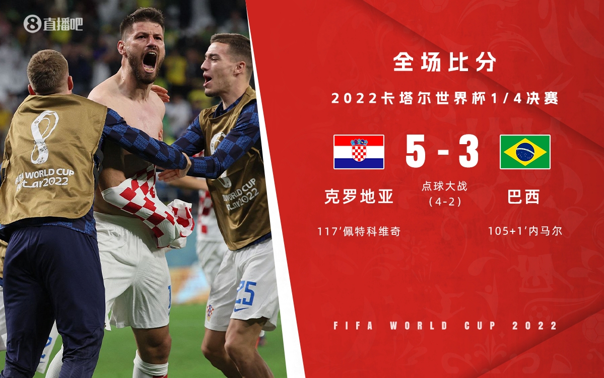 2022年卡塔尔世界杯1/4决赛,巴西由内马尔在第105+1分钟打进一球,但佩特科维奇在第117分钟绝平。点球大战中,第五个主罚的内马尔还没有出场比赛就结束了。