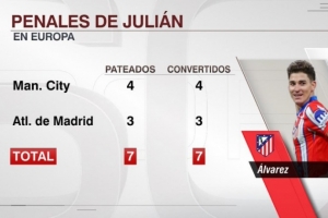 100%!阿尔瓦雷斯登陆欧洲以来7次罚点均命中 xiaoqiao 2026-01-15 nba 109 0 体育资讯4月6日讯 西甲第30轮比赛,阿尔瓦雷斯点射破门,目前马竞1-1塞维利亚。 据ESPN统计,阿尔瓦雷斯登陆欧洲联赛以来7次主罚点球,全部命中,其中包括曼城4球、马竞3球。