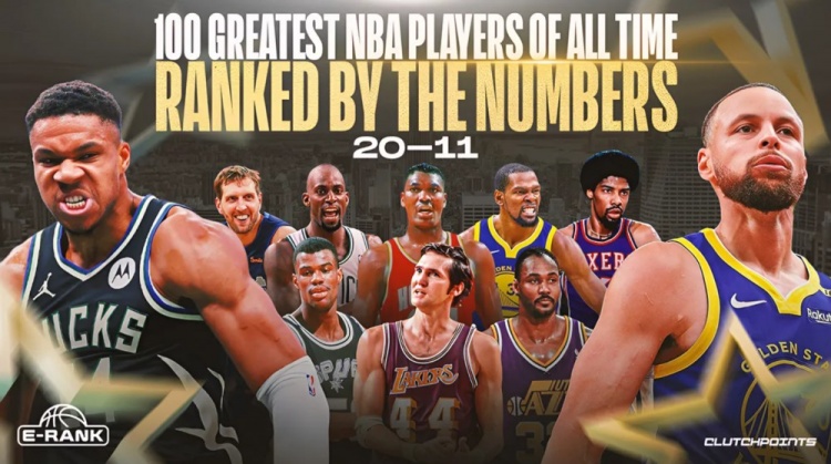 9月12日,知名体育媒体Clutch Points依据记者Josh Eberley设计的“E-Rank”算法公式,公布了NBA历史百大球星榜单的第20至11位排名: